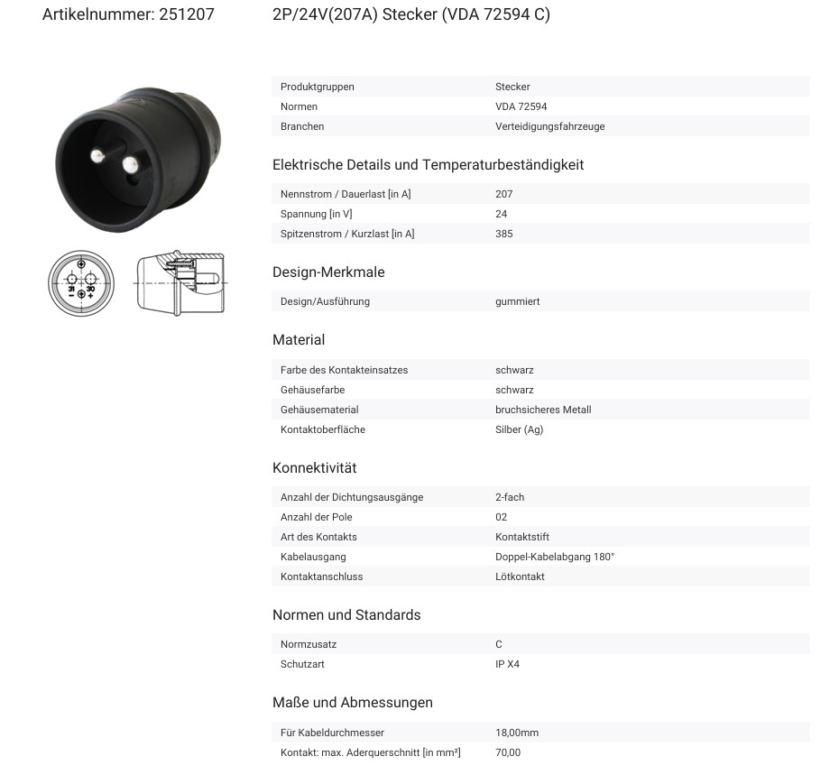– Nume: Stecher 2P/24V(207A) (VDA 72594)
